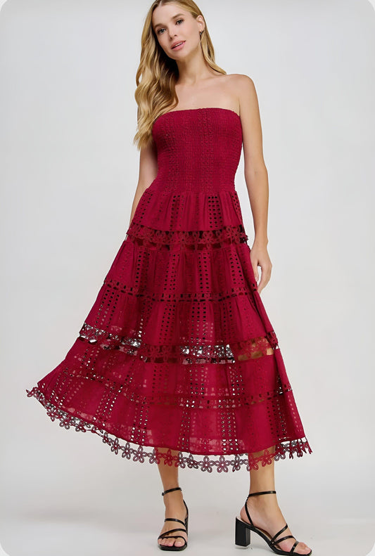 Lena Eyelet Midi Dress - Bohemian Resort Wear